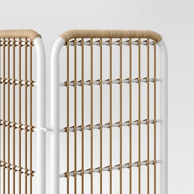 Add a beautiful, sculptural element to tie your patio or deck decor together with the help of this Southport 6′ Three-Panel Decorative Patio Screen from Opalhouseā¢. Featuring a hinged design so you can choose your preferred angle and arrangement, this 6-foot-tall patio screen provides a perfect way to divide multiple spaces in your outdoor entertaining area, or it can simply be a pretty backdrop to potted plants and other decorative items. Rust-resistant and weather-resistant qualities help keep the steel frame and wicker woven panels looking great through outdoor use.